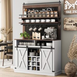 IDEALHOUSE Coffee Bar Cabinet, Farmhouse Buffet Cabinet with Storage, 75″ Tall Bar Cabinet Kitchen Buffet Sideboard with Sliding Barn Door, Coffee Hutch Cabinet for Dining Room (White)